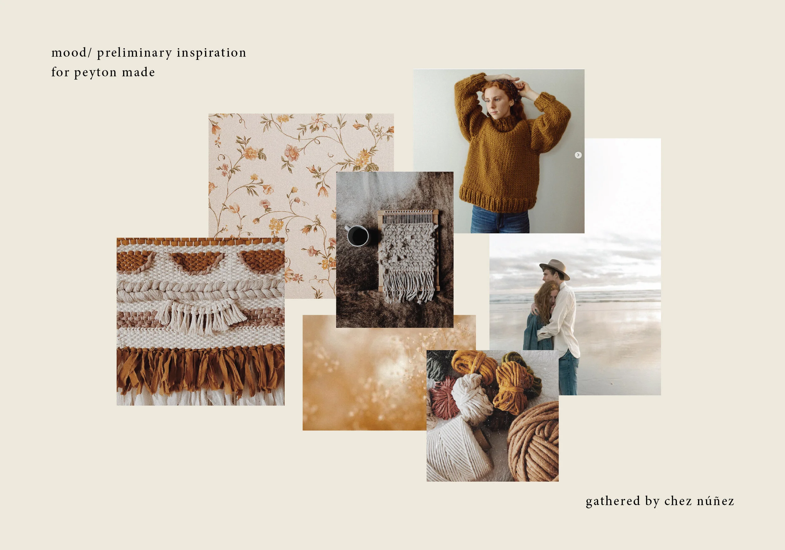 Peyton “creates functional, simple, everyday knitwear & thoughtfully handcrafted weavings for the home.” Her interests in crafts and weavings began at an early age of 8, and developed organically over the years in her life through holiday gifts or birthday presents - news of her talent kept spreading via word of mouth from there. Up until our partnership, she didn’t have any brand assets for Peyton Made to represent her work in fibers, so our project was backed by her motivation to establish a brand that looks + feels legitimate, while also appearing approachable and welcoming at the same time.