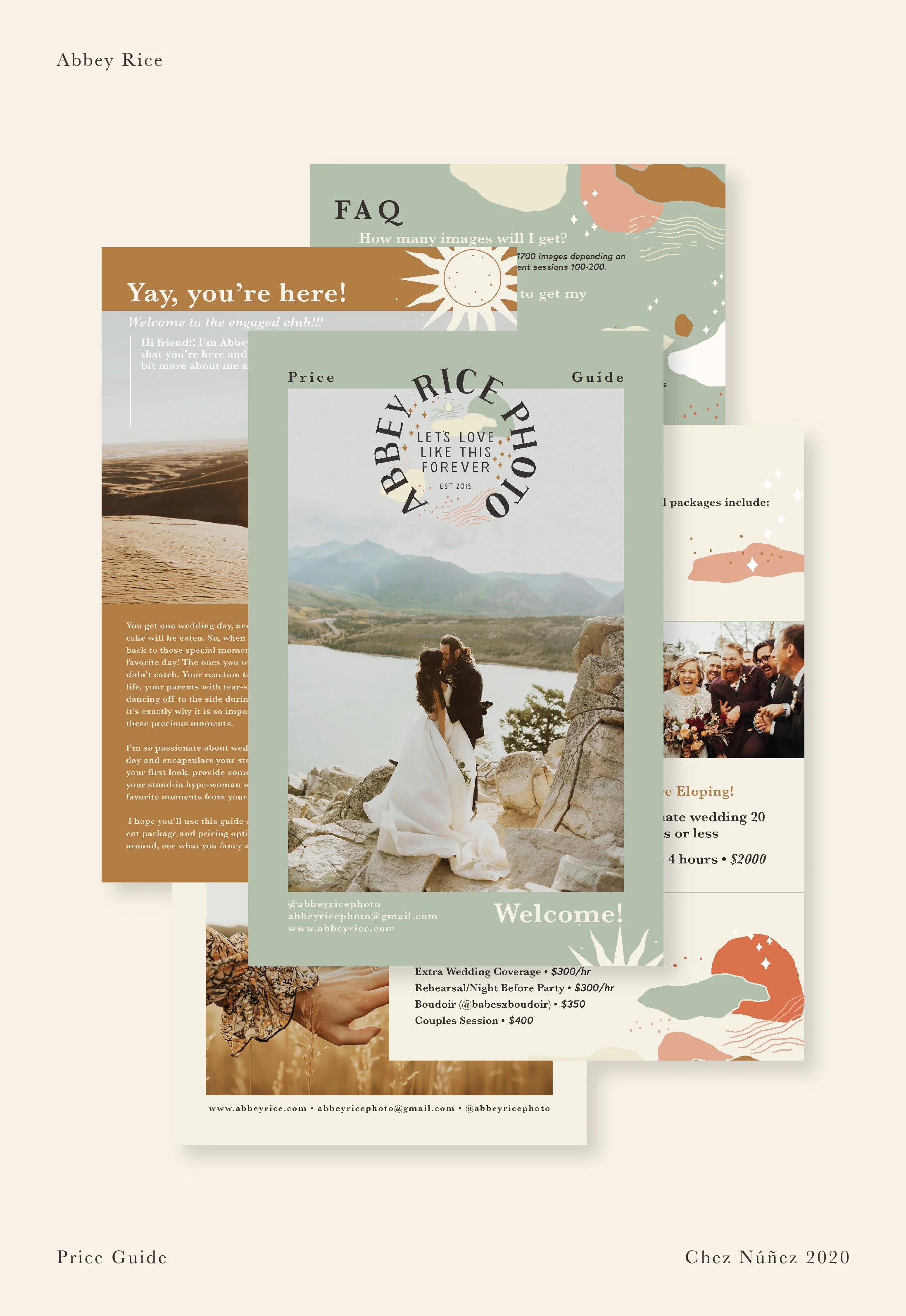 Earlier this year (2020), I wrapped up a robust and joyful branding project with Abbey Rice, the Colorado-based Wedding Photographer of Abbey Rice Photo. I had such a wonderful time working with Abbey, and the two of us are so proud of what we came up with together, that I wanted to share a closer look at our process and finished designs within this spotlight!