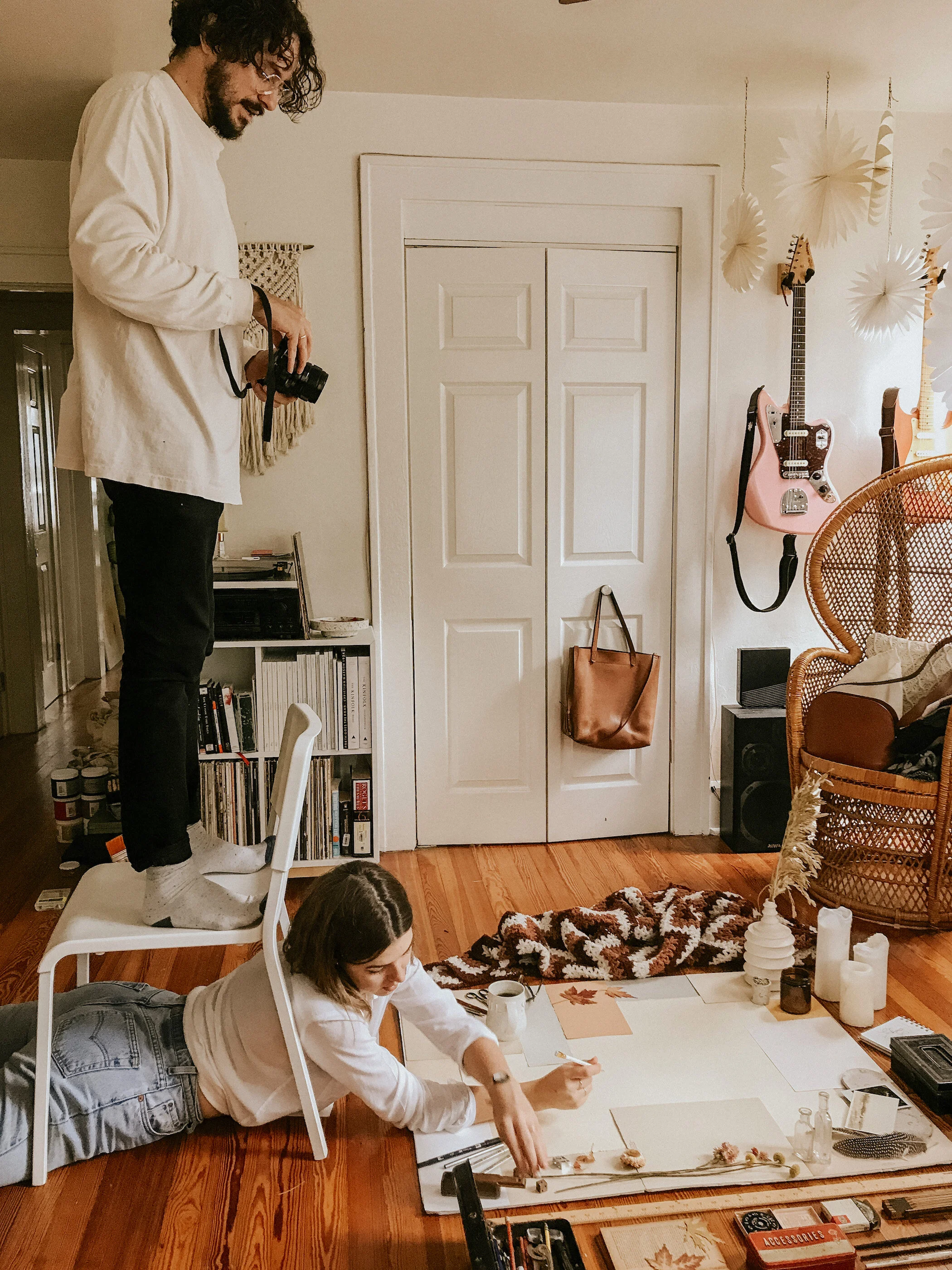Pro-Tip: If you need a high vantage point to now capture this masterpiece you styled on your floor, ask a buddy to stand on a chair over top of you. ;) Just make sure to use a very sturdy chair and be safe in the process!